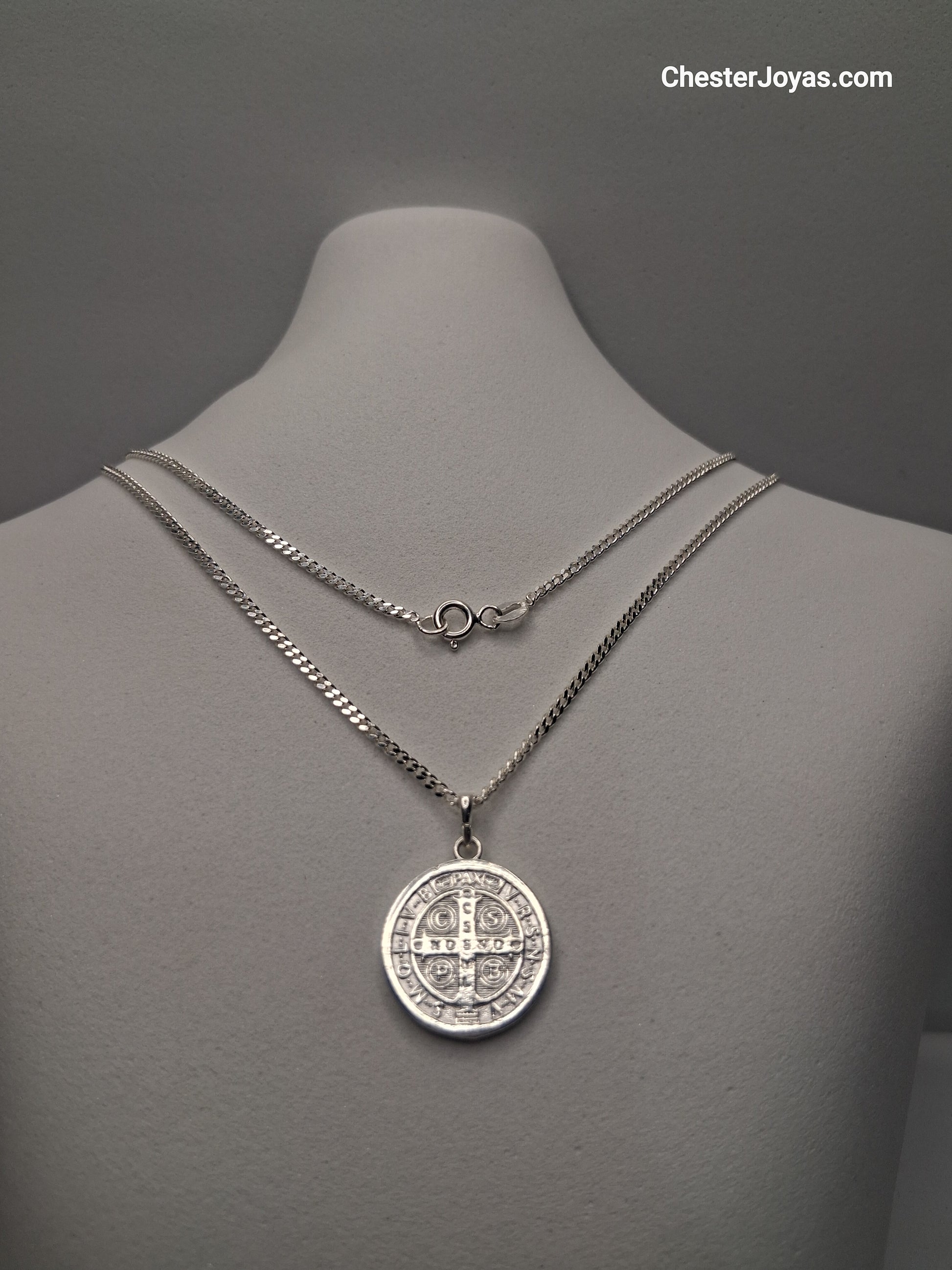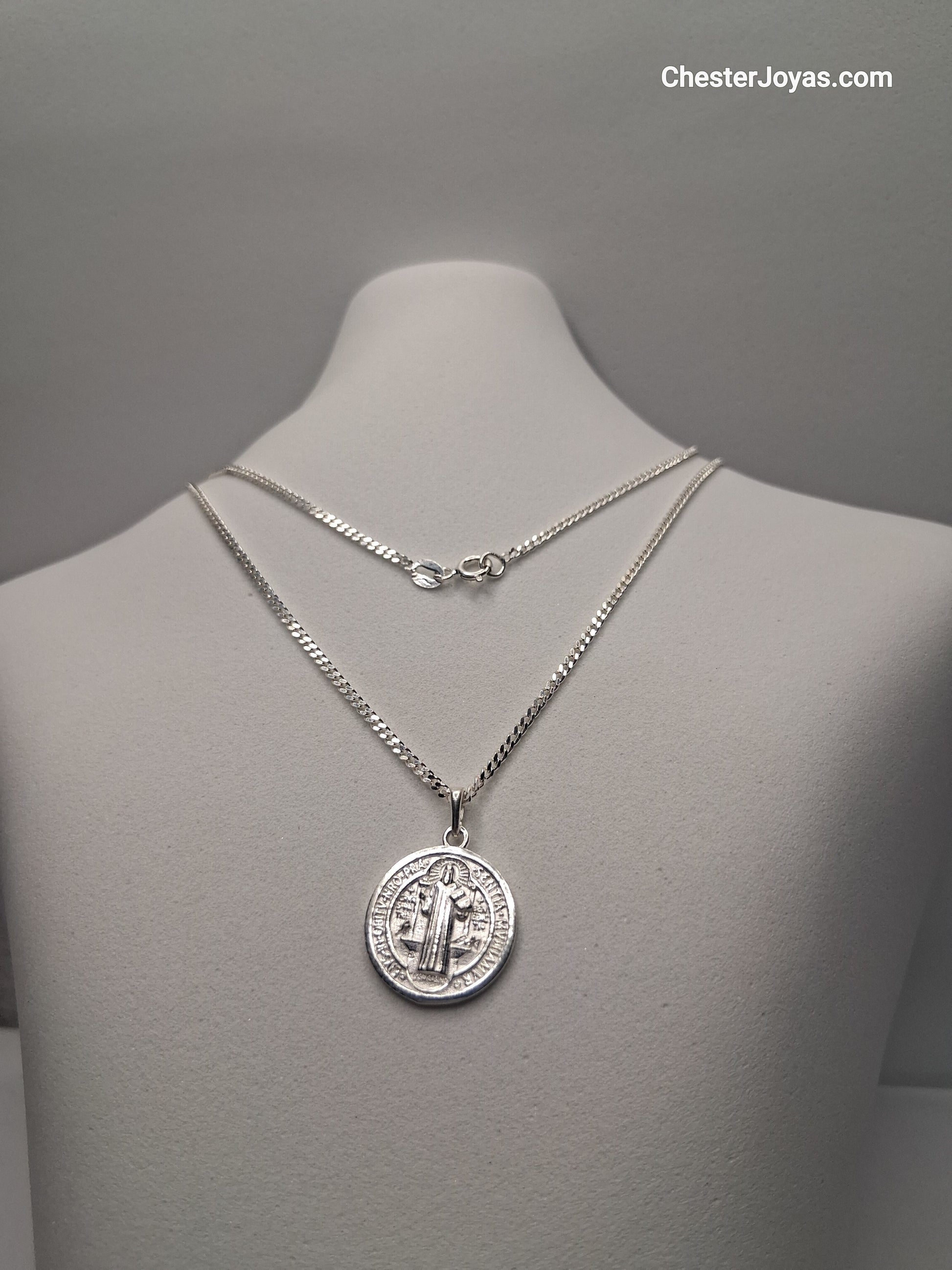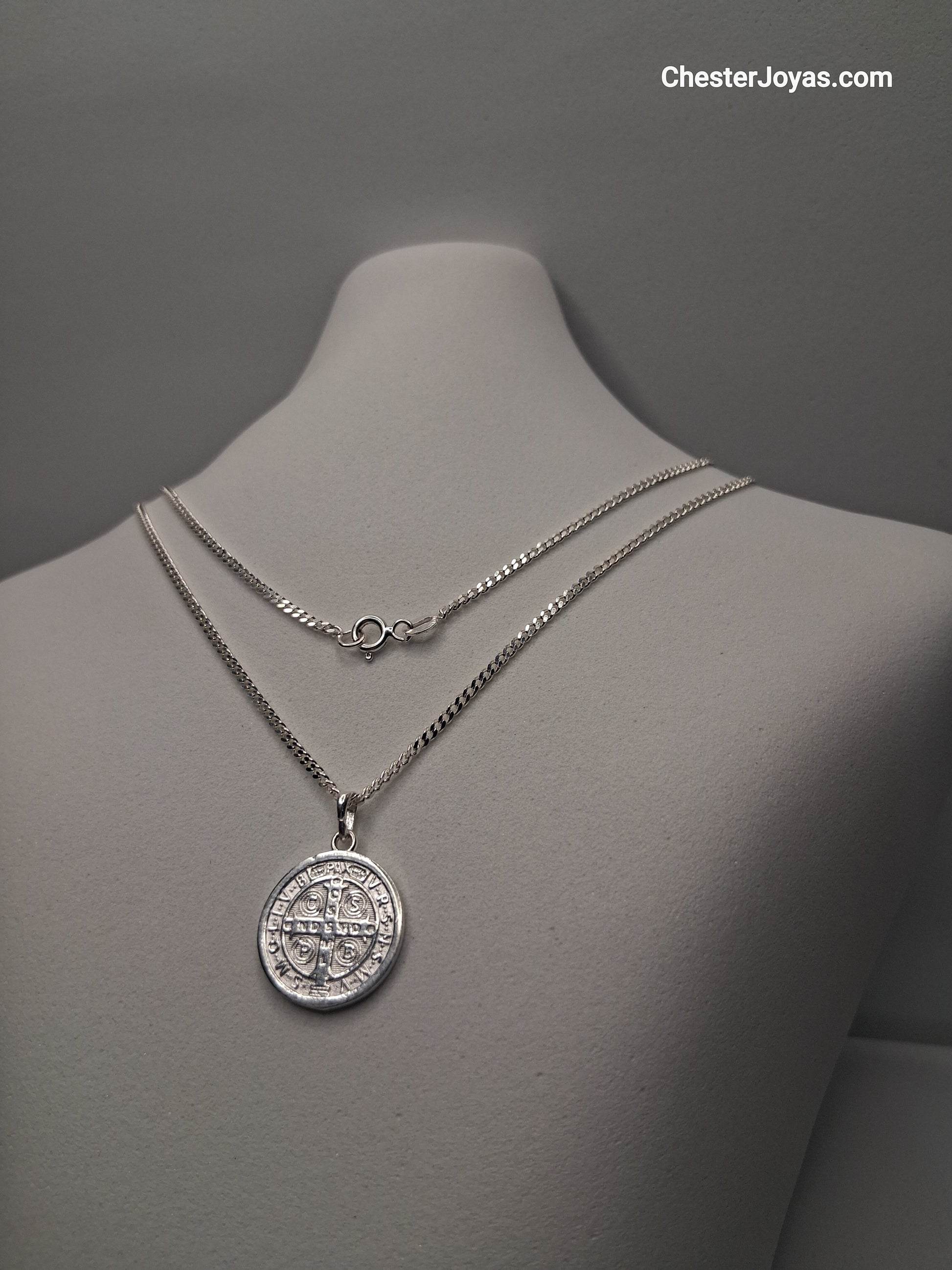 Un símbolo de protección y fe. Esta cadena de Plata 925 de 60 cm se acompaña de un dije de San Benito, reconocido por su fuerza espiritual y significado ancestral. Ideal para quienes buscan llevar consigo una energía positiva y un amuleto lleno de historia.