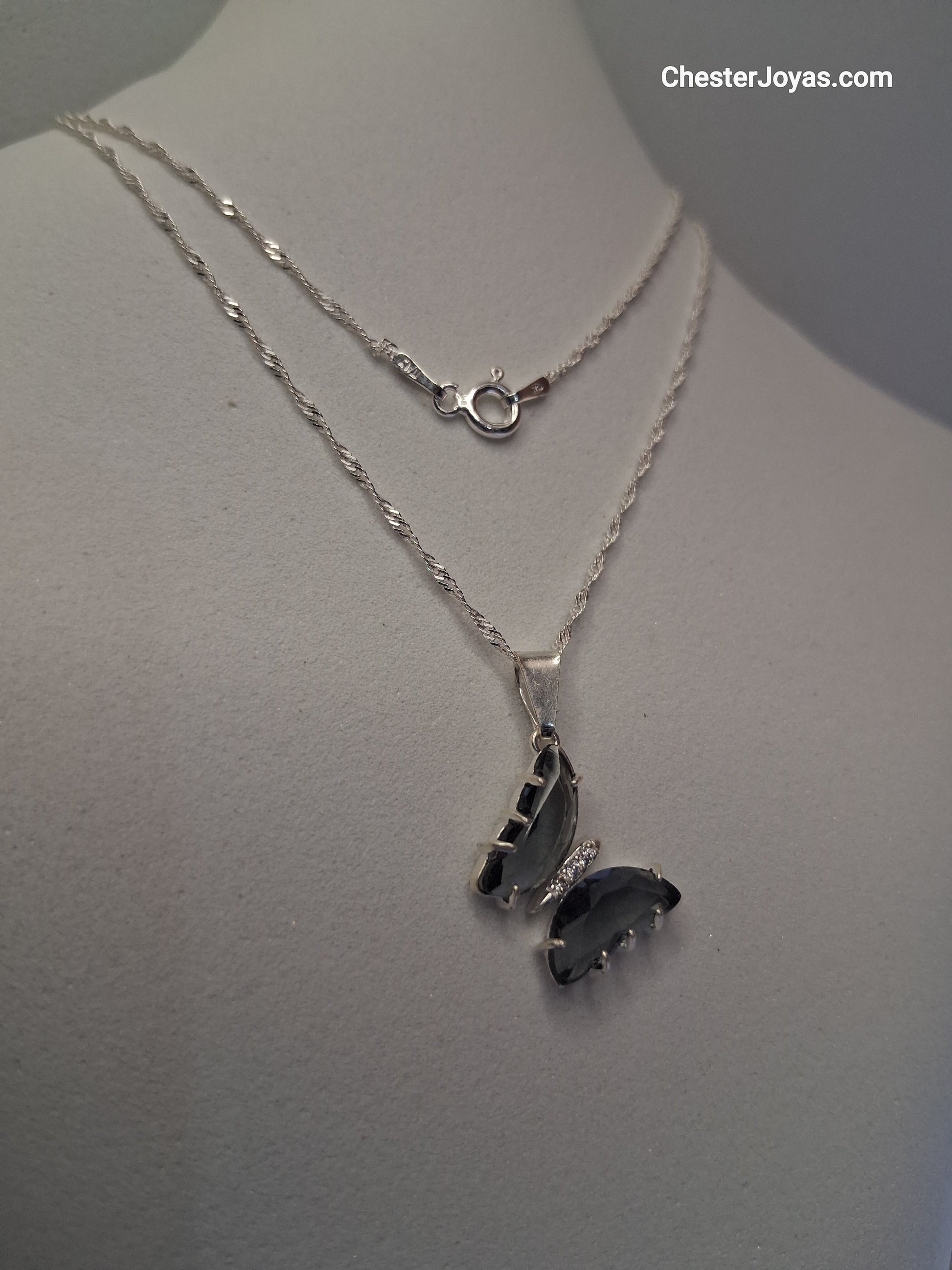 Collar - Mariposa Piedra Negra engazada (Singapur) - Plata925 - Dama.