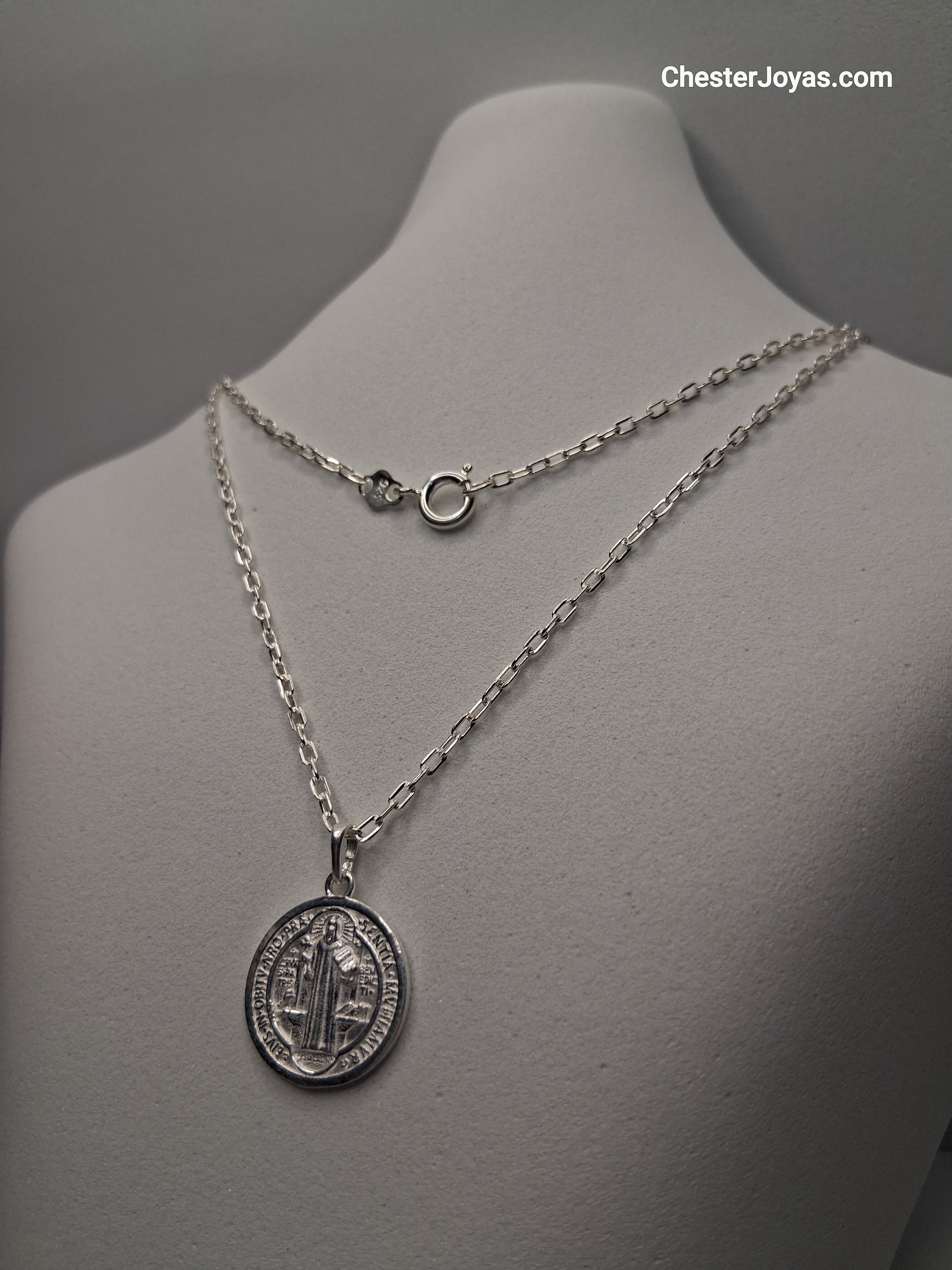 Combina fe y estilo con este precioso collar de Plata 925 que presenta un elegante dije de San Benito. Este collar no solo es un accesorio, sino también un símbolo de protección y espiritualidad.
