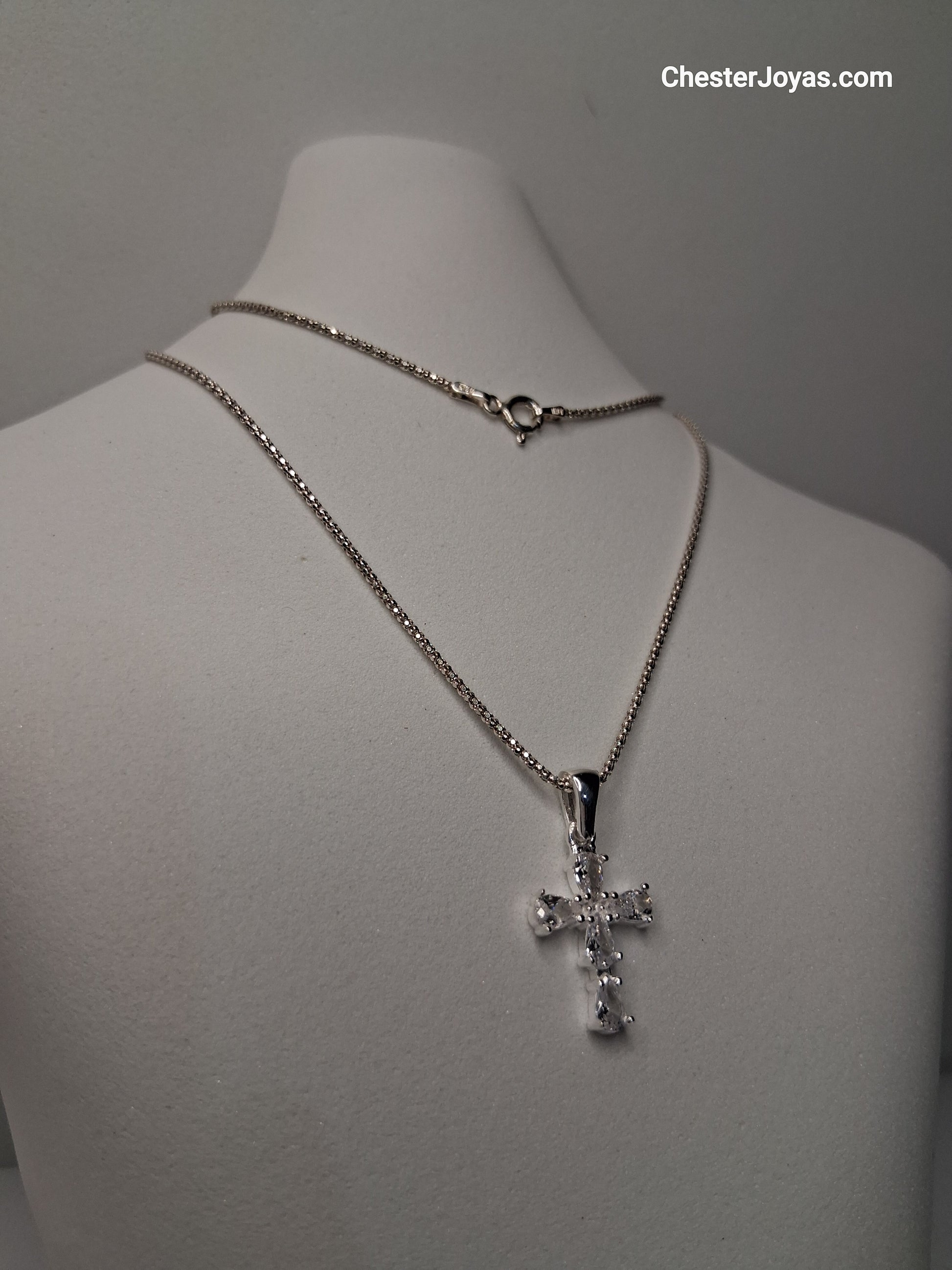Collar - Cadena Coreana x 45 cm Cruz con Piedras blancas - Plata925.