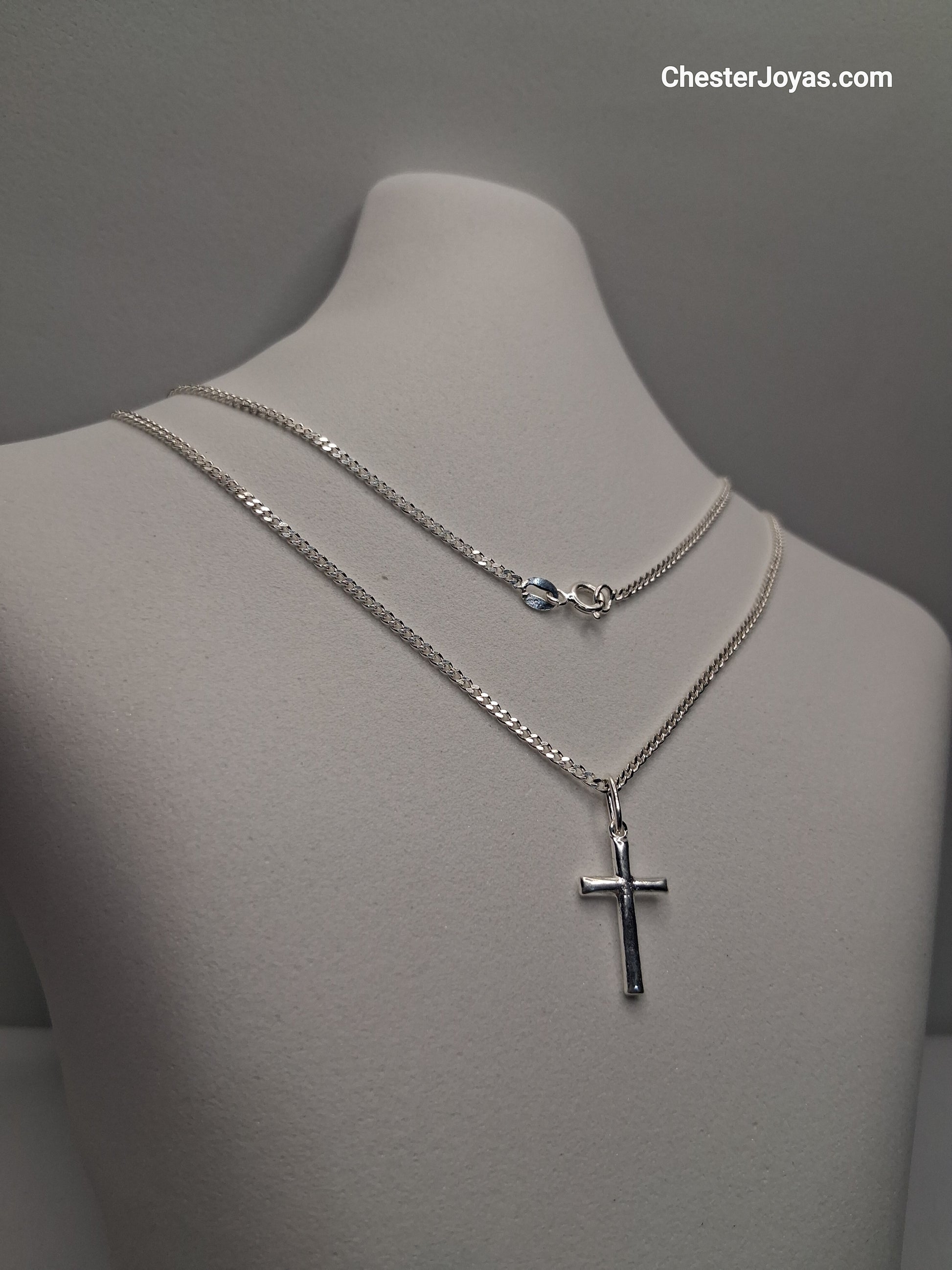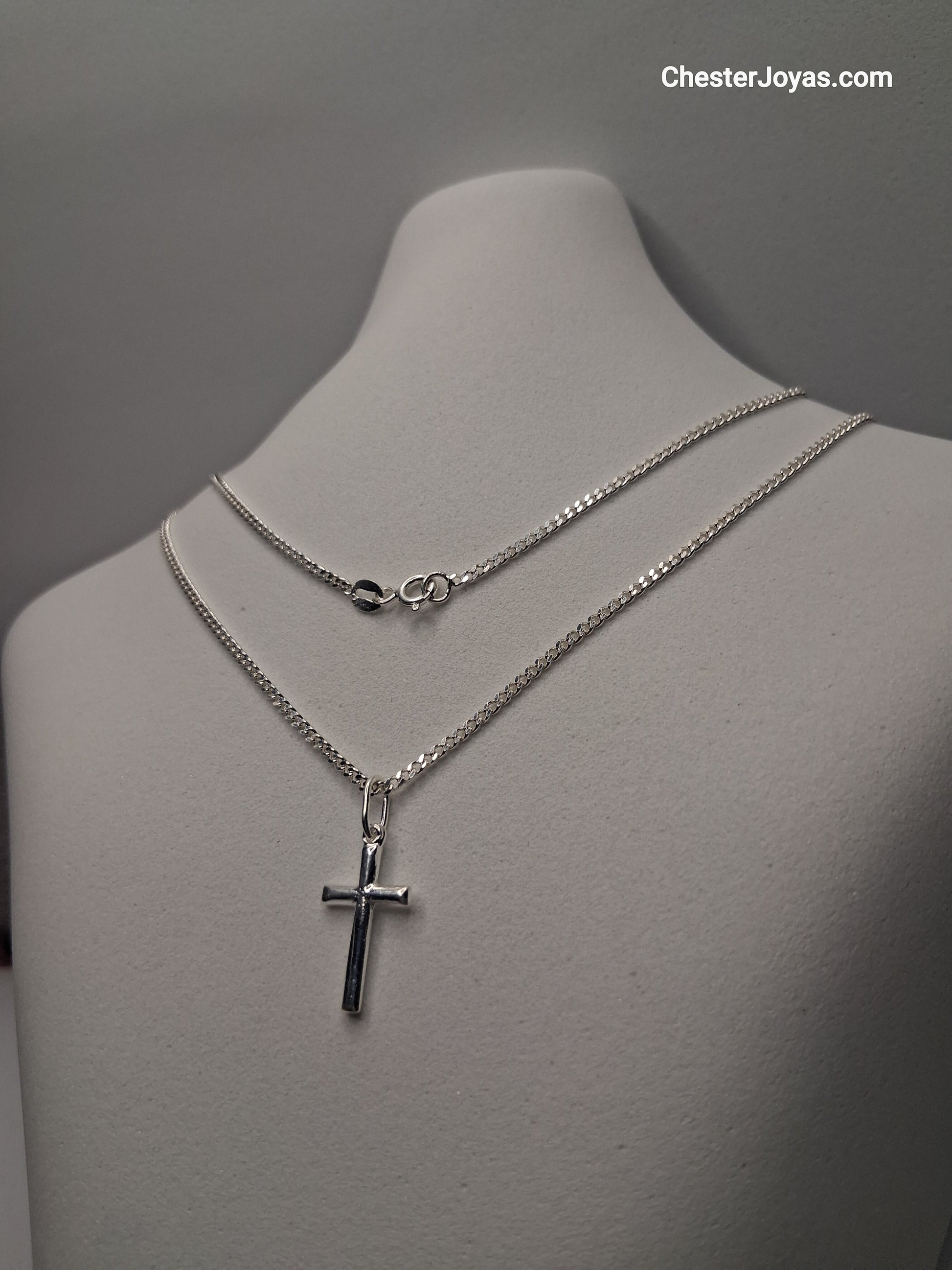 Collar - Cadena Diamantada x 60 cms - Cruz Chica - Plata925 - Caballero.