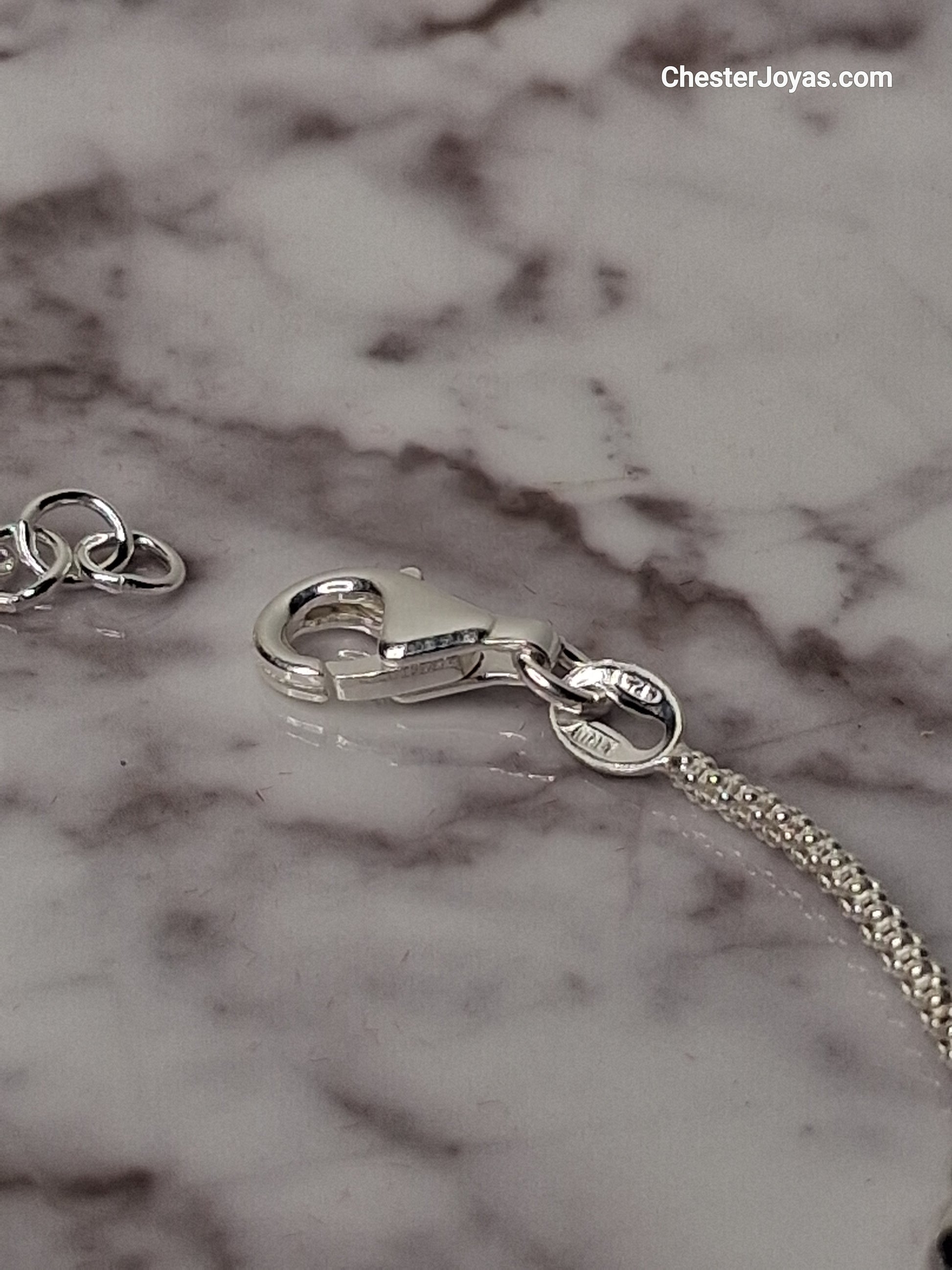 Esta pulsera es perfecta para quienes buscan una joya única y elegante que pueda lucirse sola como una declaración de estilo o combinarse con otras piezas para crear un look más elaborado. La calidad y brillo característicos de la Plata 925 garantizan que esta pulsera sea duradera y resistente al paso del tiempo, convirtiéndola en una inversión atemporal en tu colección de joyas.