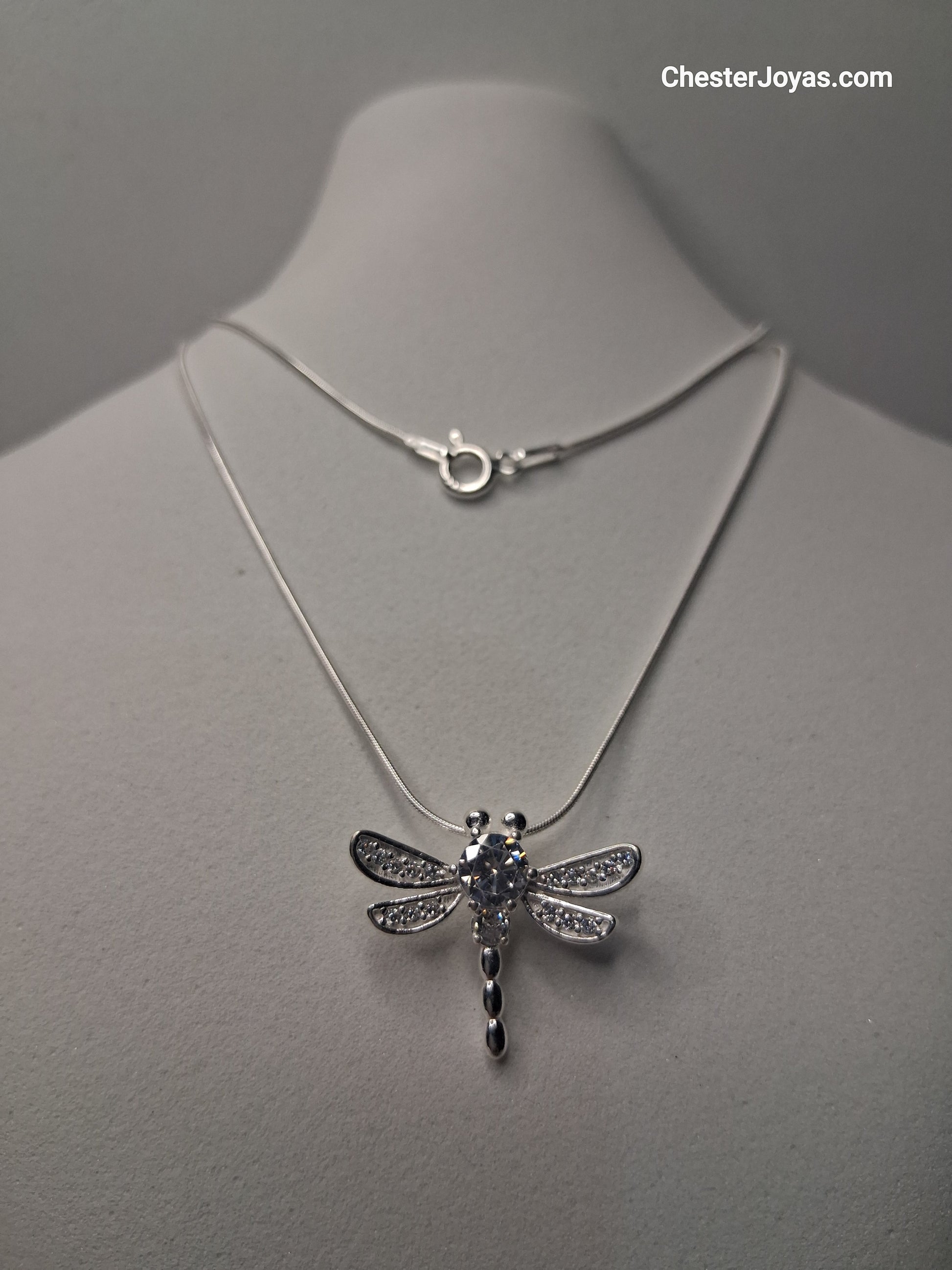 Nuestro collar de libélula está elaborado en Plata 925, con un dije elegante embellecido con piedras blancas de brillo intenso que capturan la luz y realzan tu estilo en cualquier ocasión.